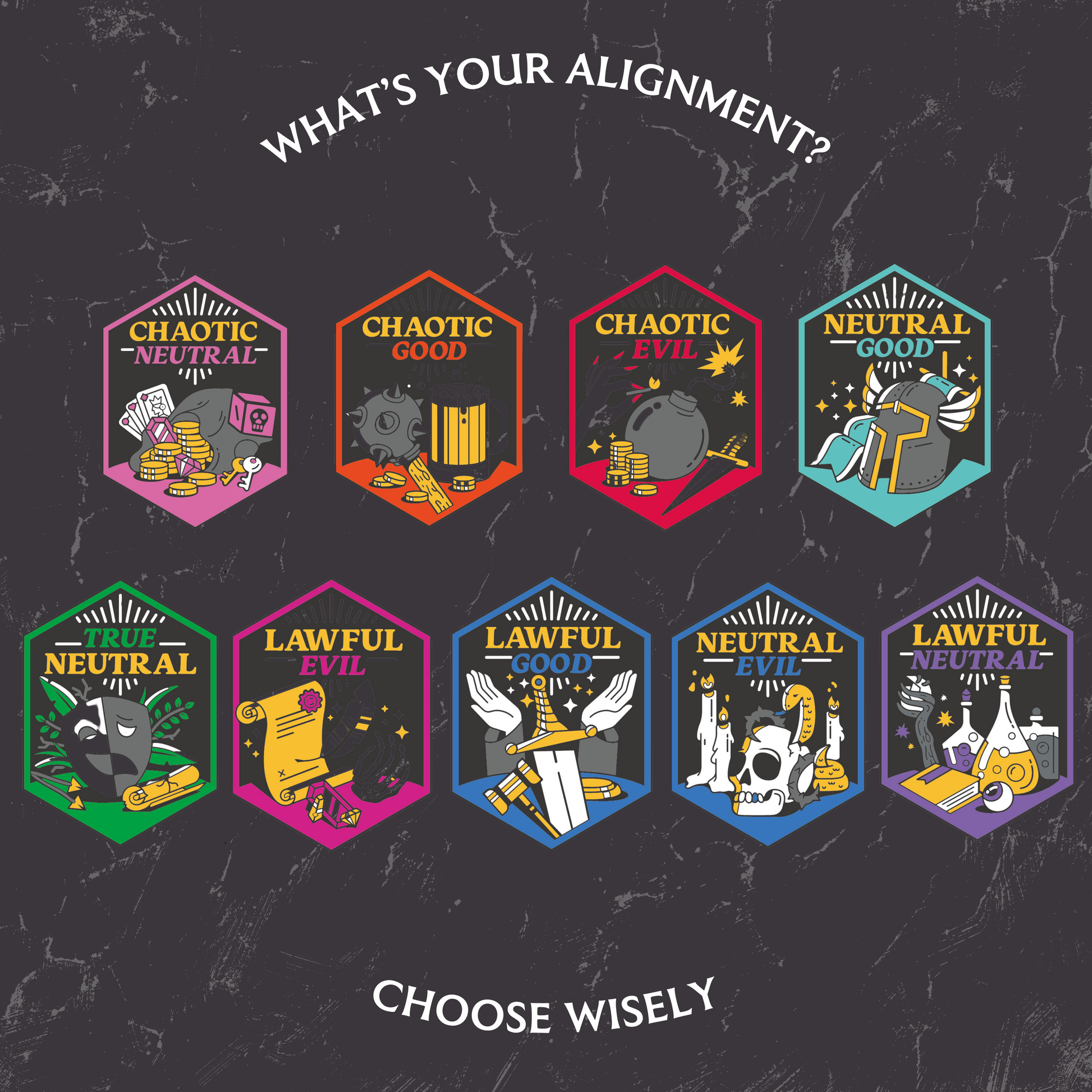 Complete your collection with all nine enamel alignment pins – the perfect companions for your journey through realms unknown.