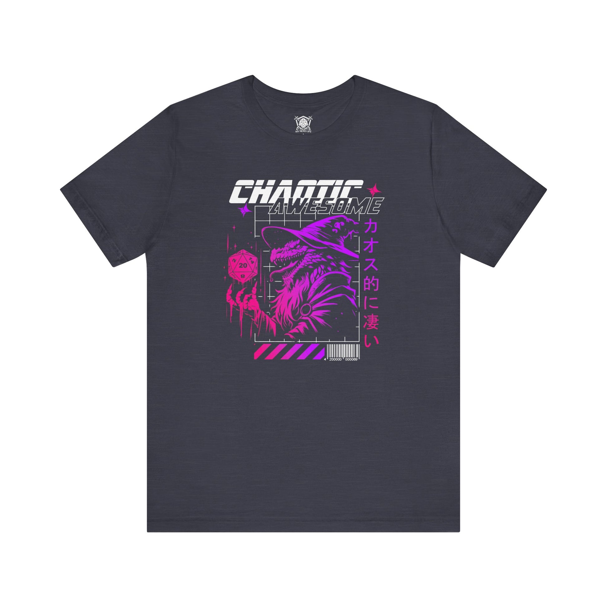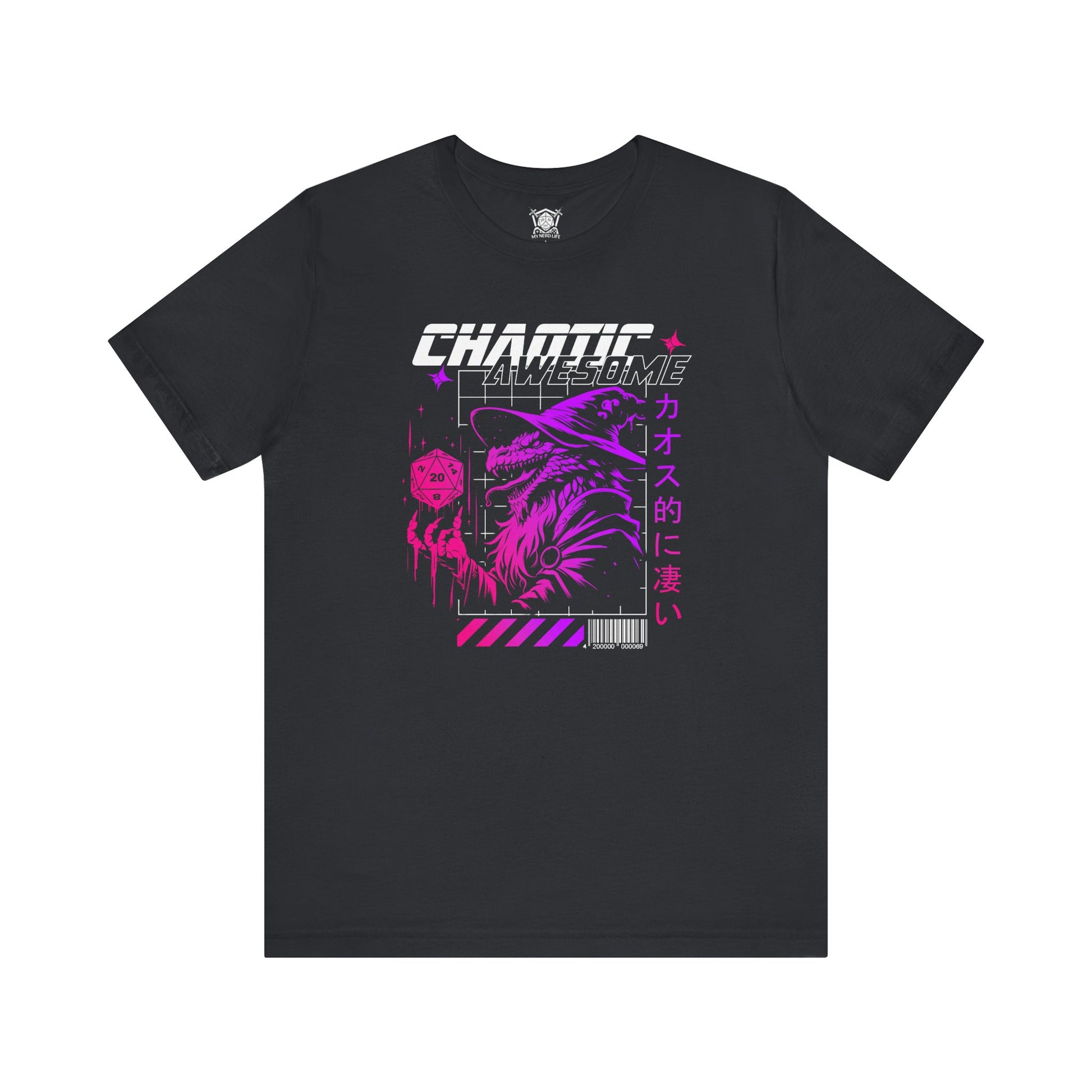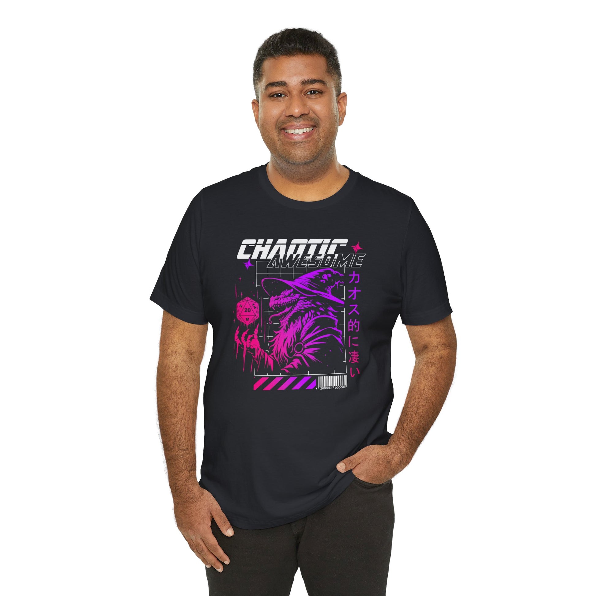 Featuring a striking design of a grinning, spell-casting reptilian creature holding a D20 die, this shirt is perfect for those who thrive in the unpredictable.