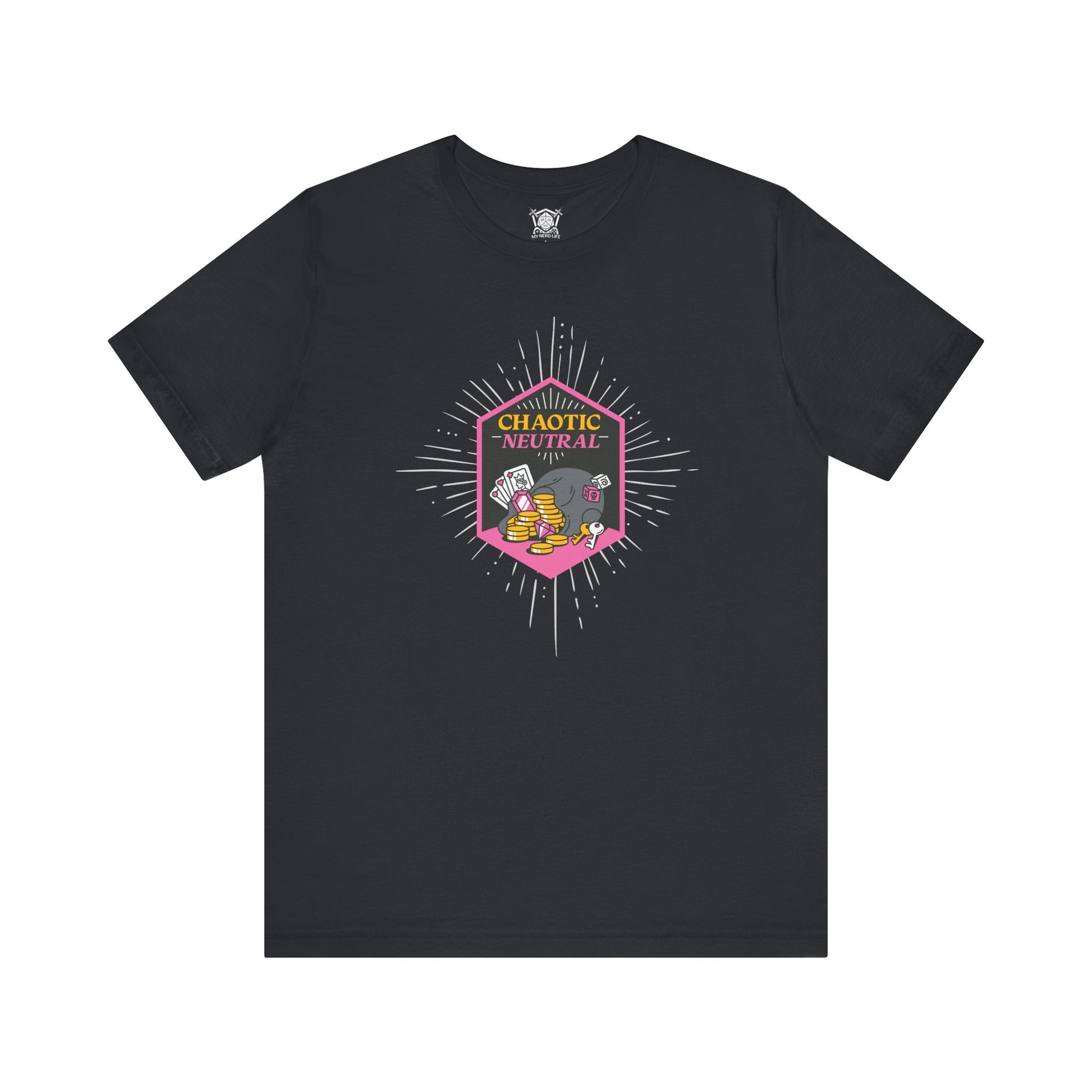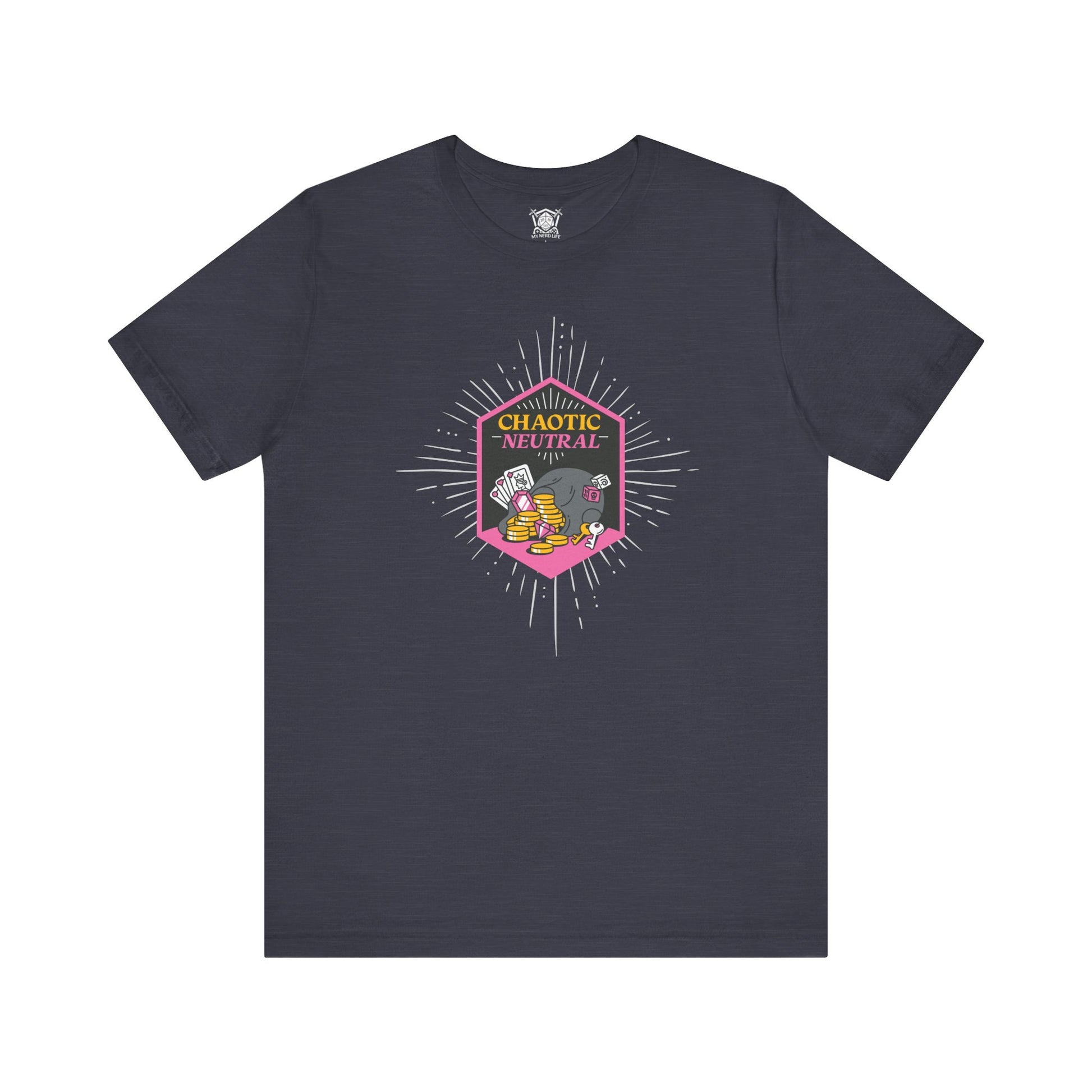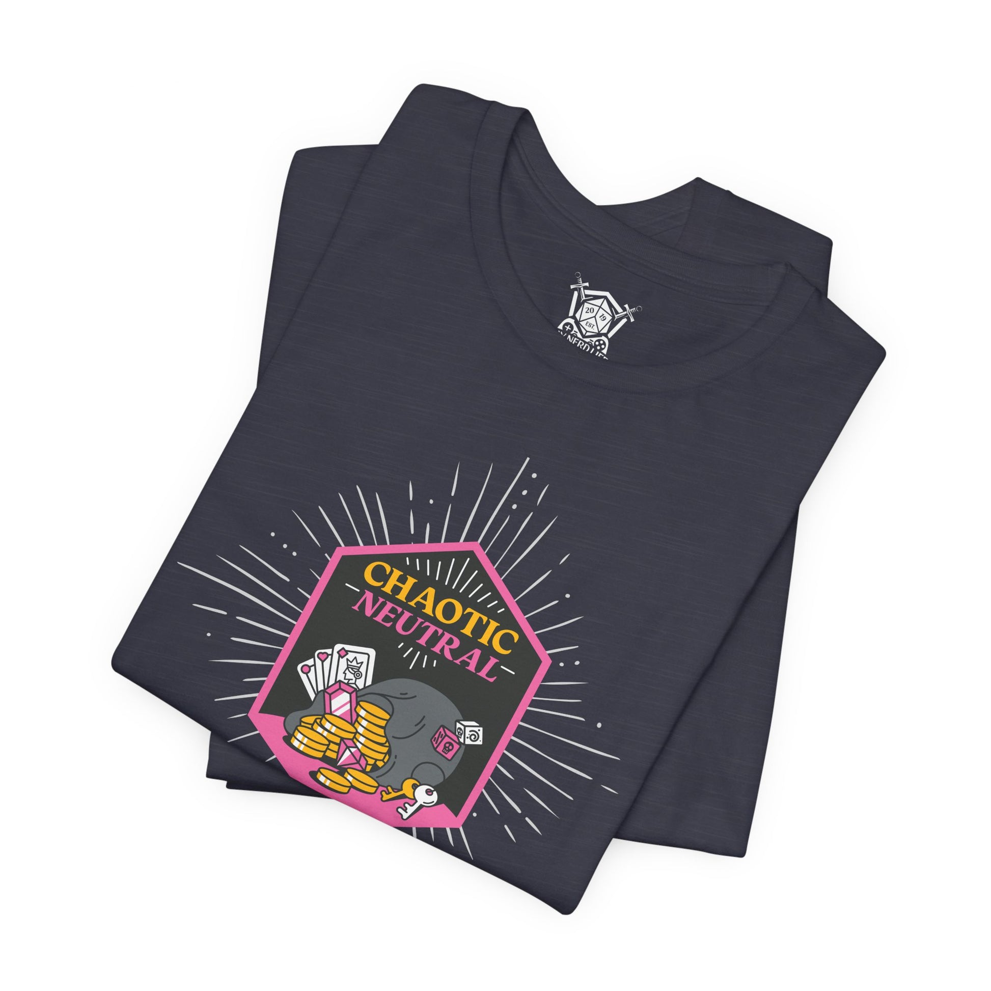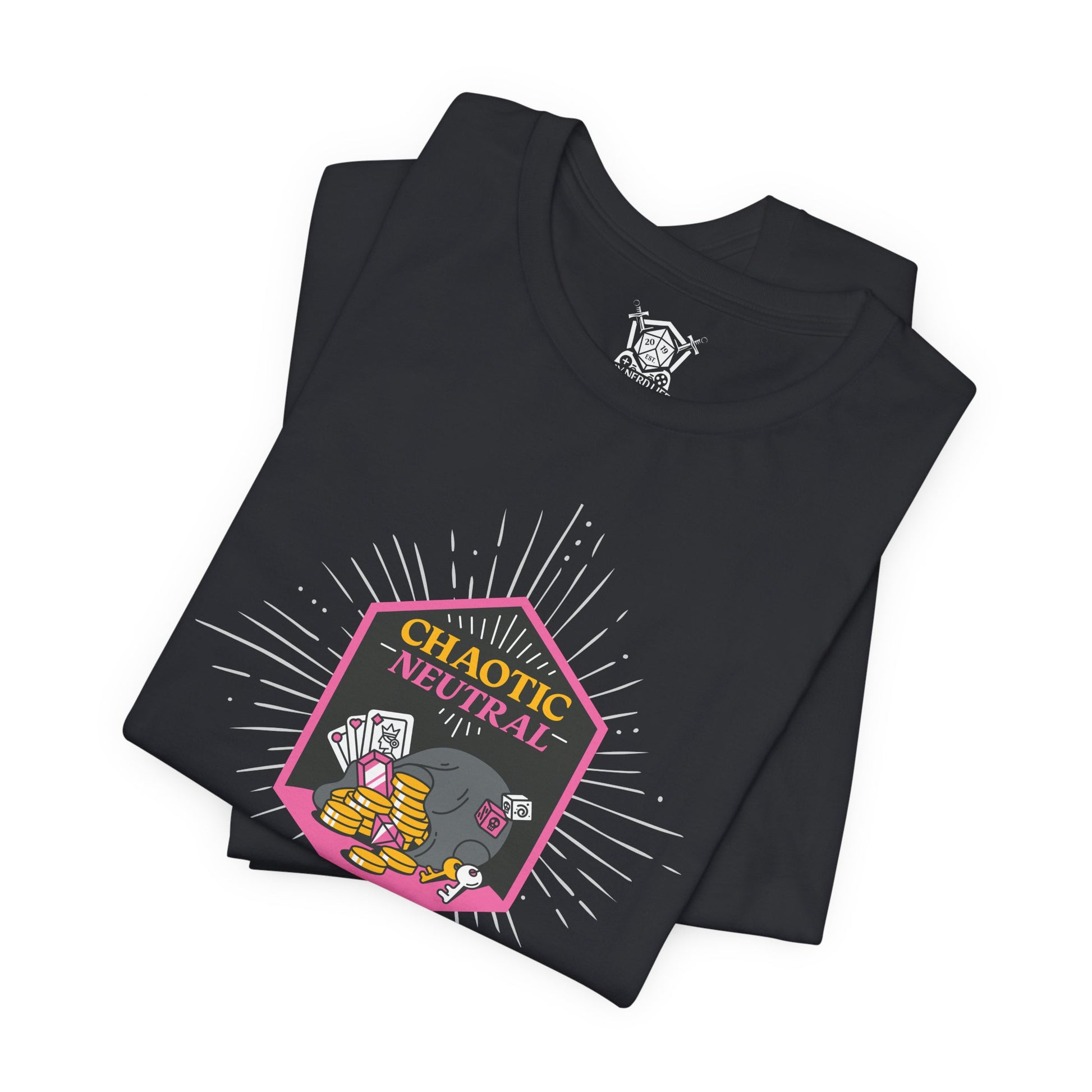 Embrace spontaneity with the Chaotic Neutral Tee.