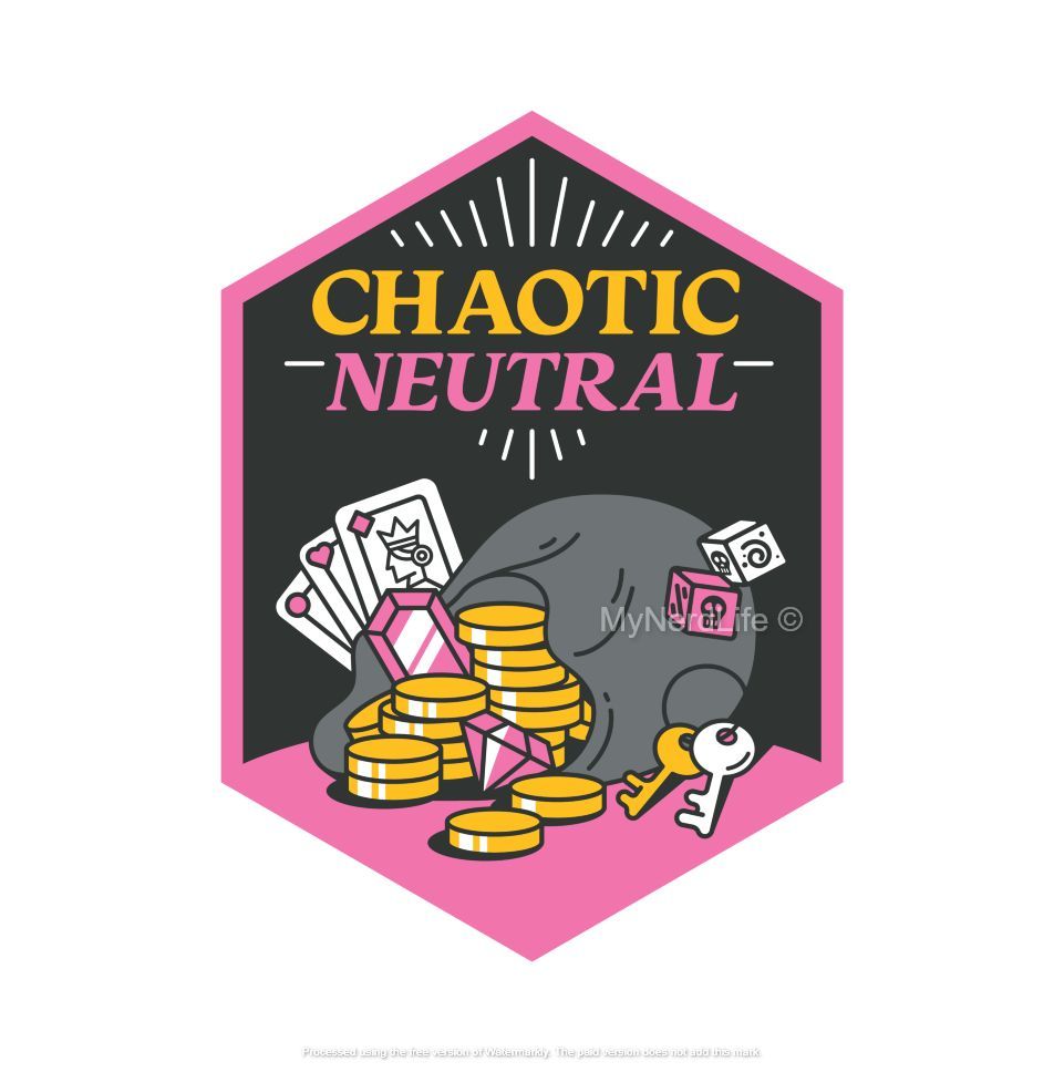 This playful pin features a dynamic design that captures the essence of chaotic neutral highlighting the unpredictable and free-spirited nature of this alignment.