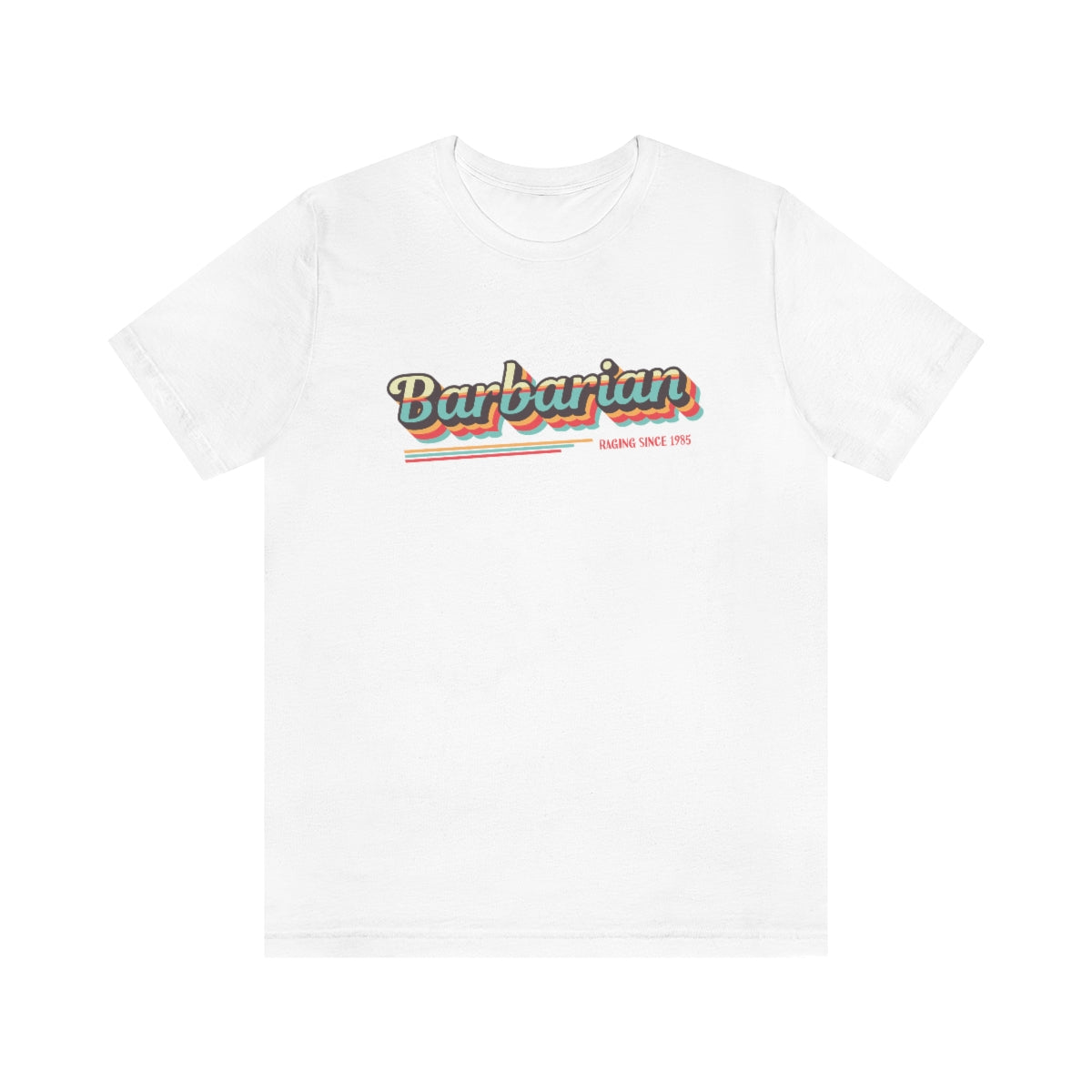 Show off your fierceness, chaotic energy, and rebellious nature with this Barbarian Retro Class T-Shirt available in multiple colorways, made with high-quality cotton and printed with eco-friendly ink.