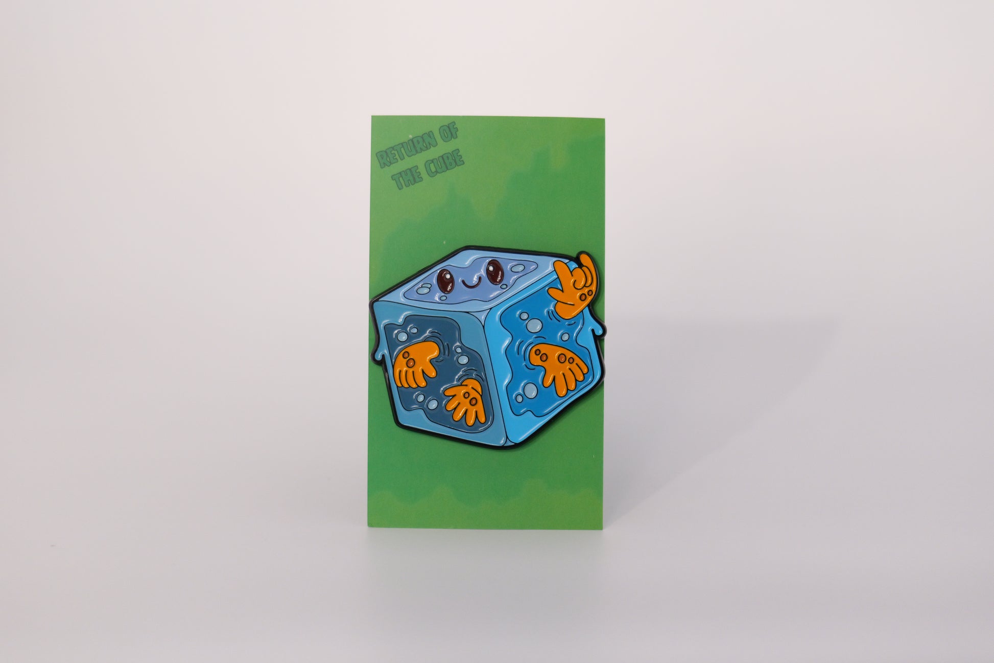 Add a splash of fun to your collection with the High-Five Cube Soft Enamel Pin from our captivating Gelatinous Cube Series.