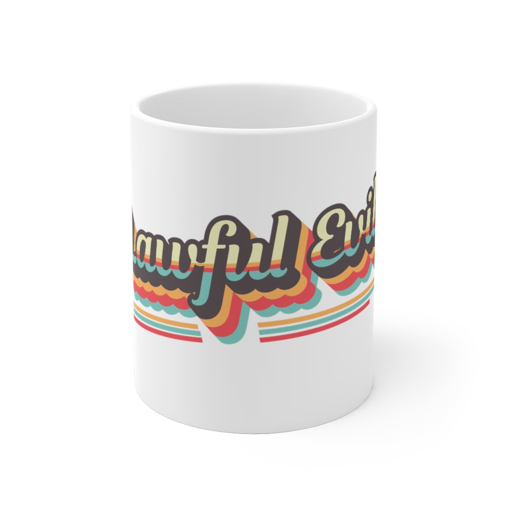 This Lawful Evil mug is 11oz, white ceramic, and printed with eco-friendly ink.