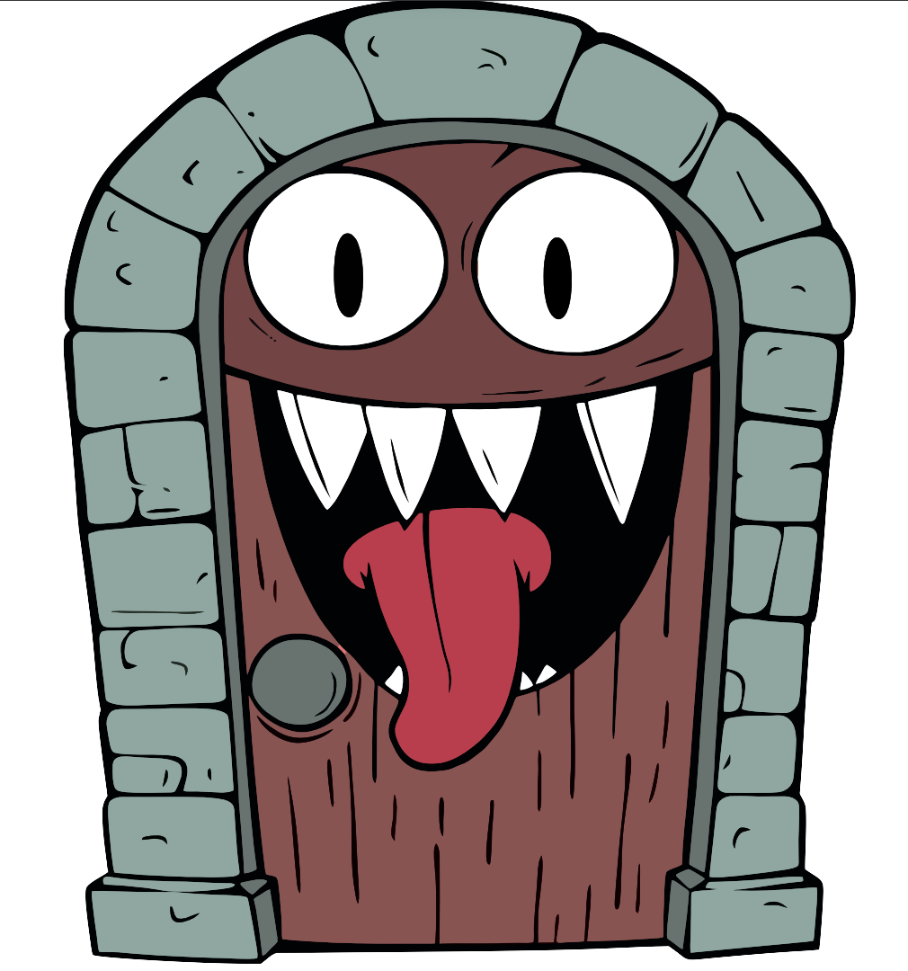 This 1.5-inch pin features a sneaky mimic disguised as a stone and wooden door, complete with a menacing face, sharp teeth, and a slithering tongue ready to strike.