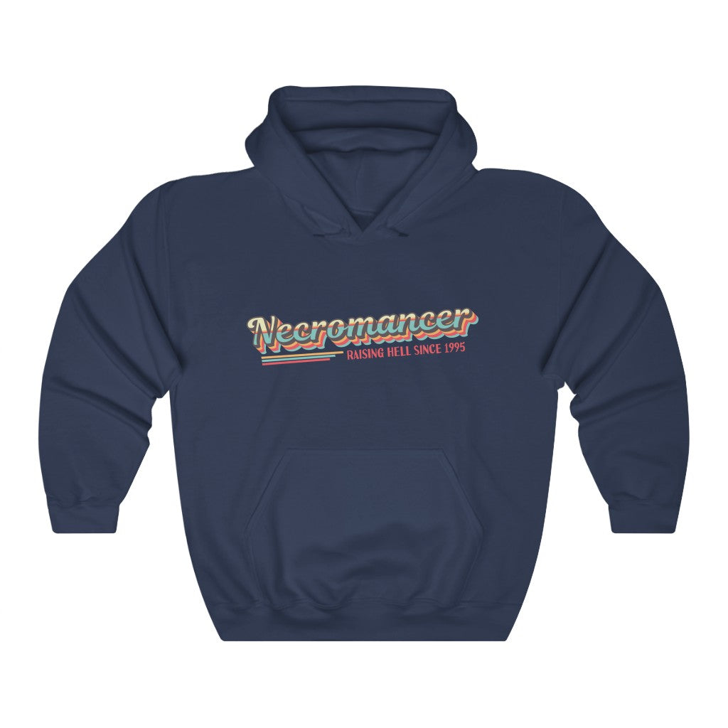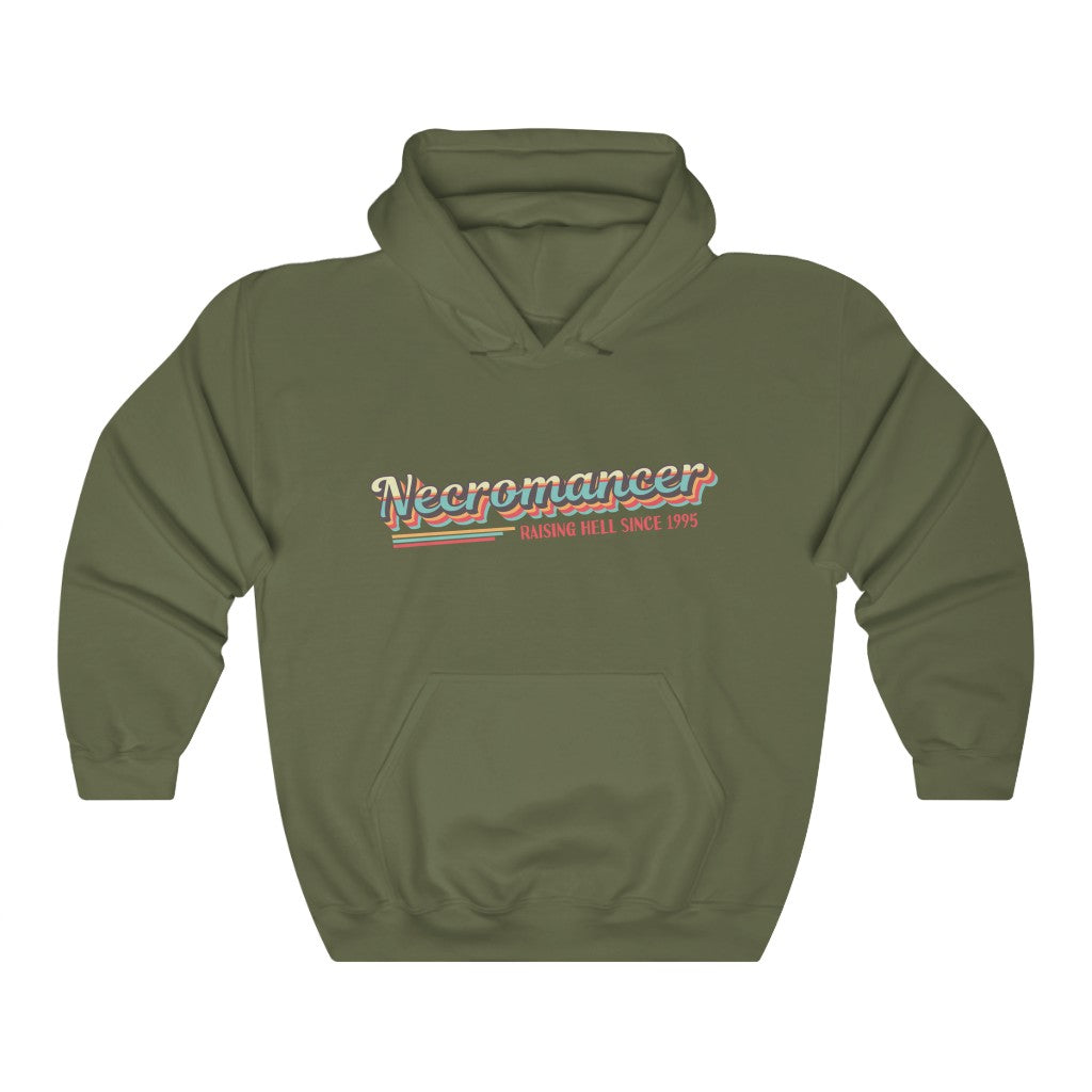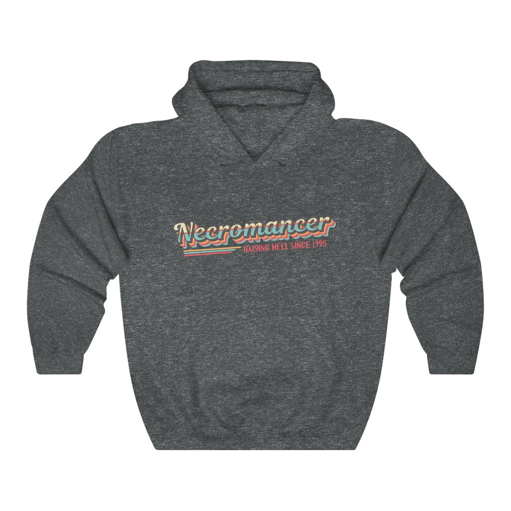 Are you a being who often feels alone with other mortals. Do you crave the company of those that have already passed? You may have arcane abilities, but tread towards the less socially accepted side of things? If so, show off your ability to raise the dead with this Necromancer Retro Class Hoodie.