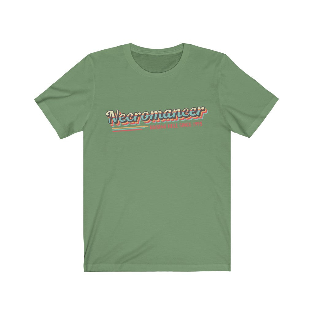 Are you a being who often feels alone with other mortals. Do you crave the company of those that have already passed? You may have arcane abilities, but tread towards the less socially accepted side of things? If so, show off your ability to raise the dead with this Necromancer Retro Class T-Shirt.