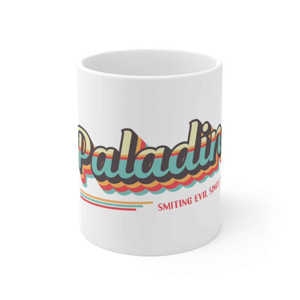 Paladins are bonded by their mighty oaths to fight the forces of evil and pursue harmony. If you feel like a natural-born fighter who would put the power to heal the world and protect the innocent above everything, always seeking justice – this Paladin Retro Class Mug was made for you!
