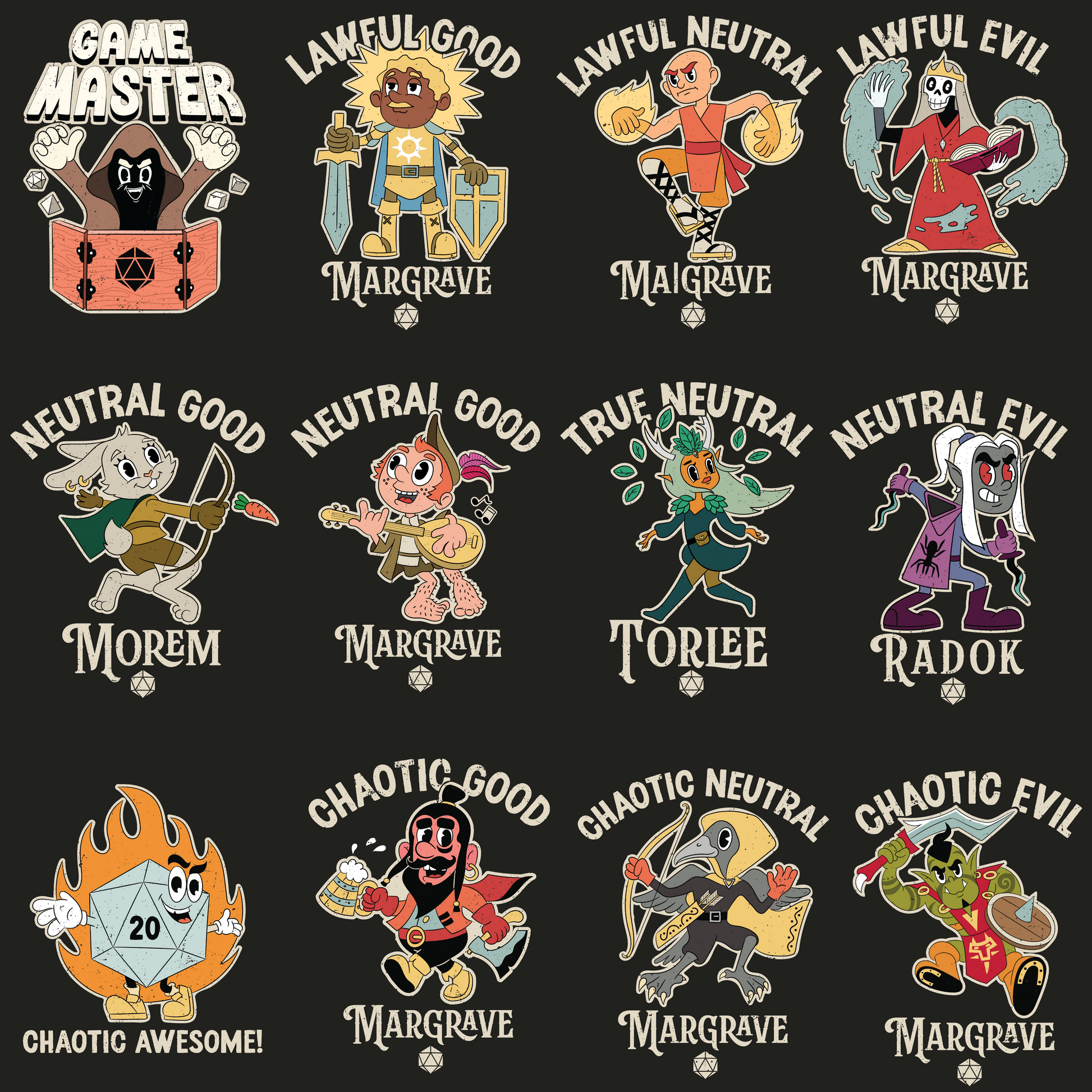 If you want a different character with the alignment just put it in the notes, otherwise they character will be associated with the alignment in the pictures shown.