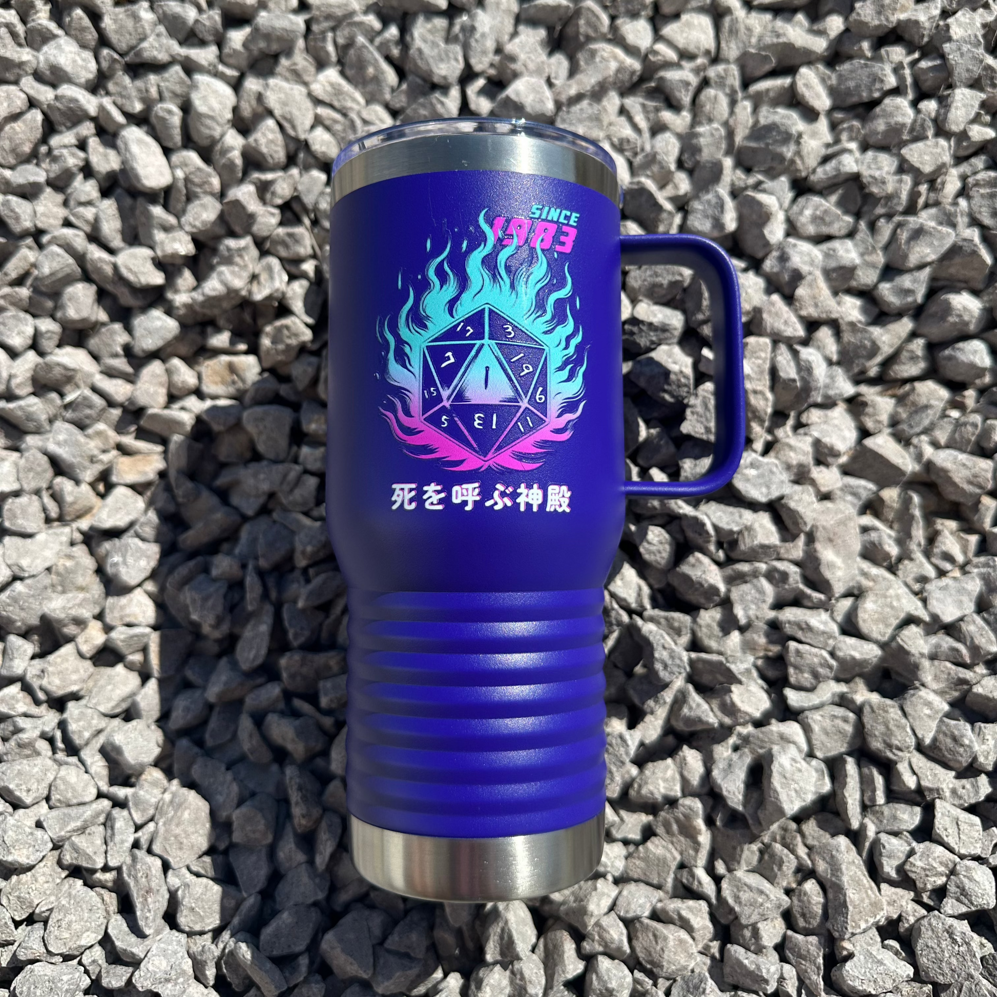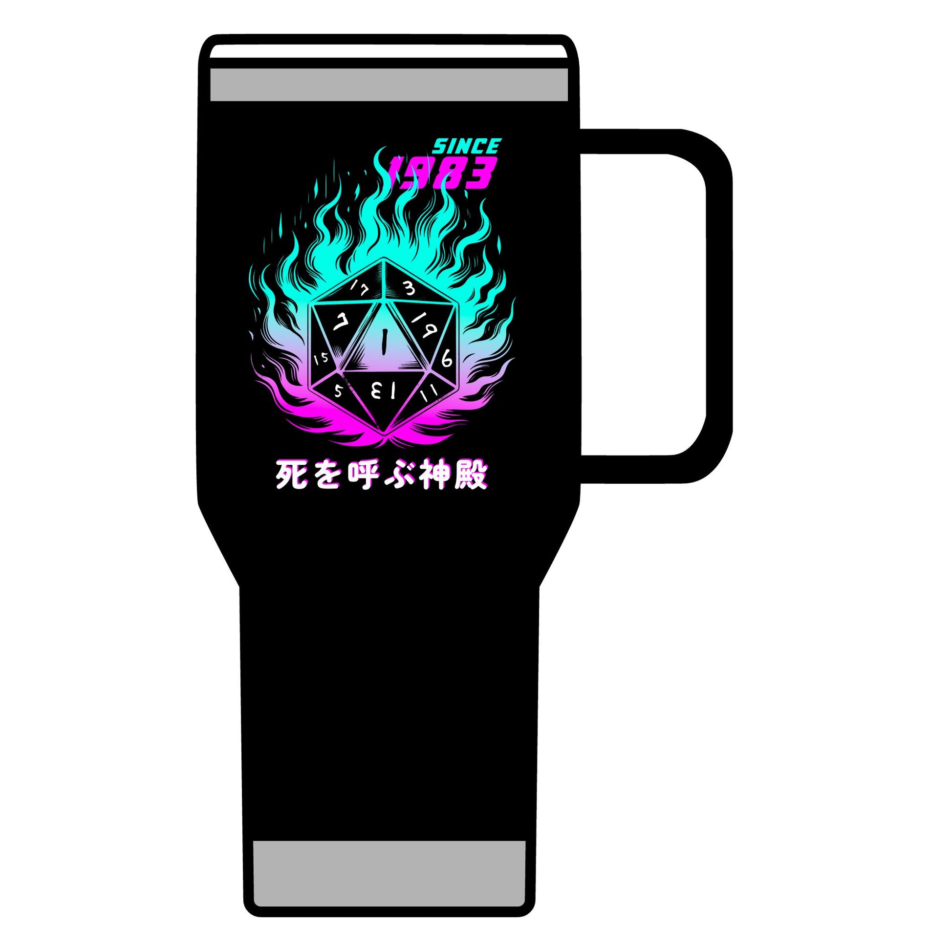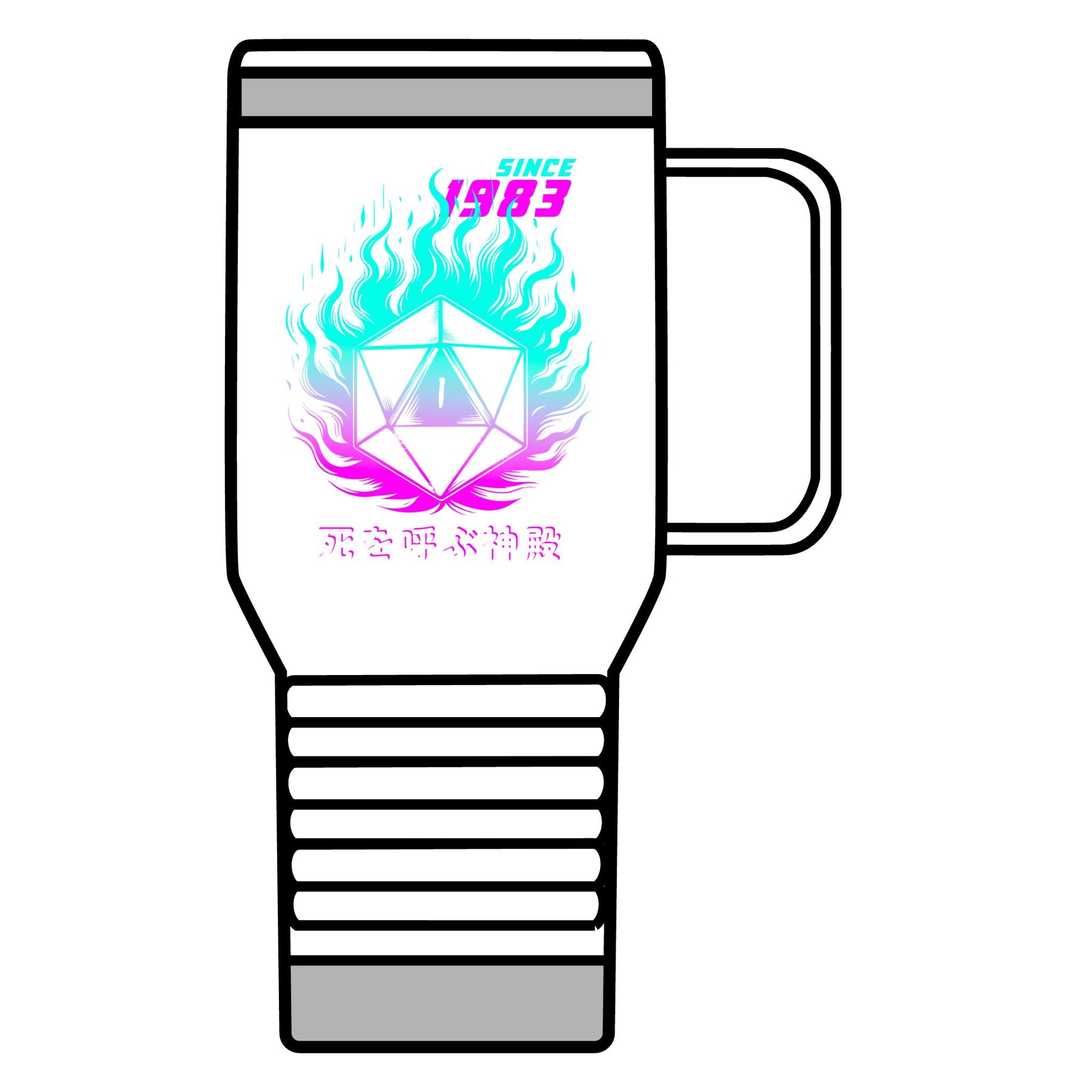 This Japanese-themed Tumbler features a double-walled vacuum insulation with a clear lid. It features a narrower bottom to fit most standard cup holders. It has a vibrant design throwing back to the classic adventure, making it a must-have for any tabletop enthusiast.