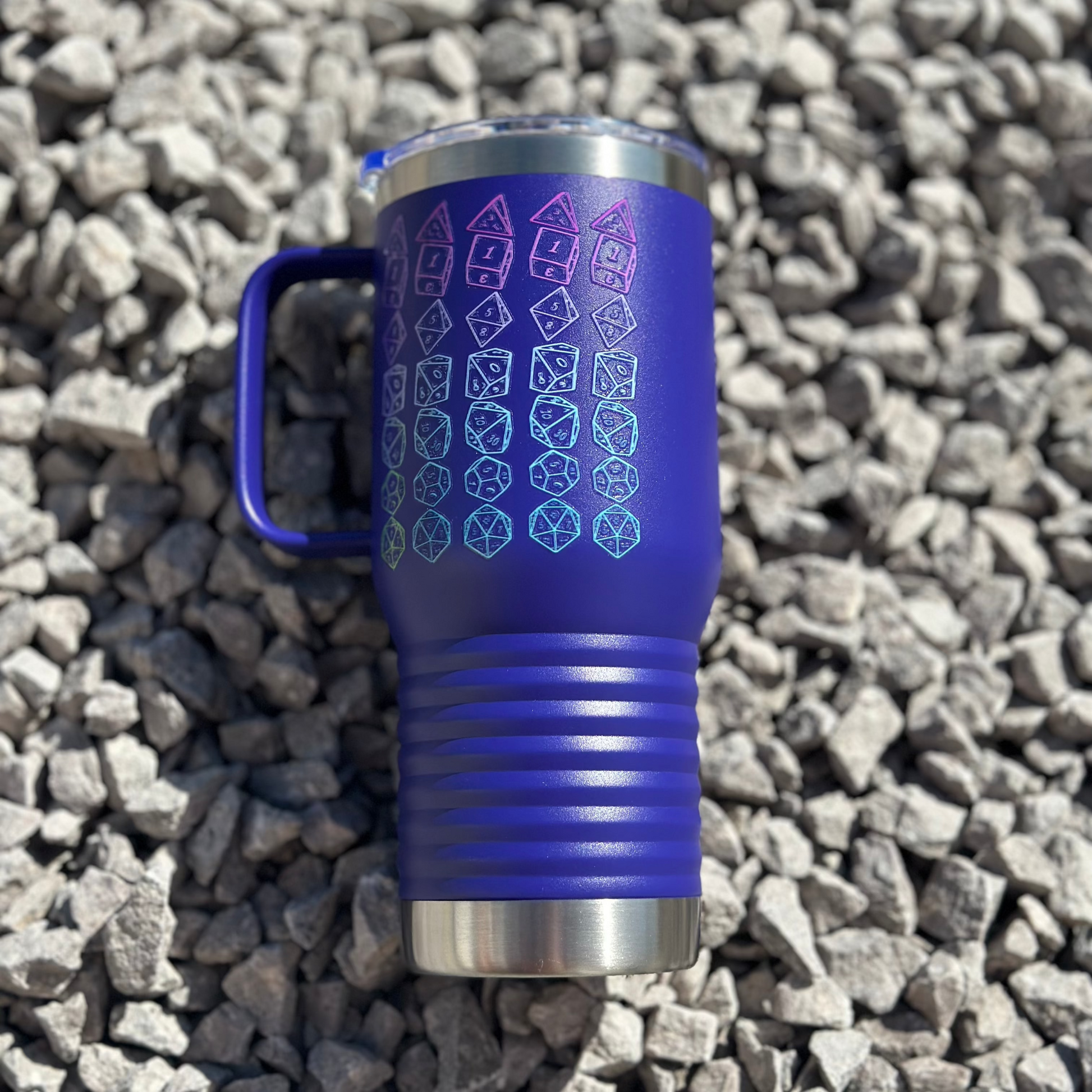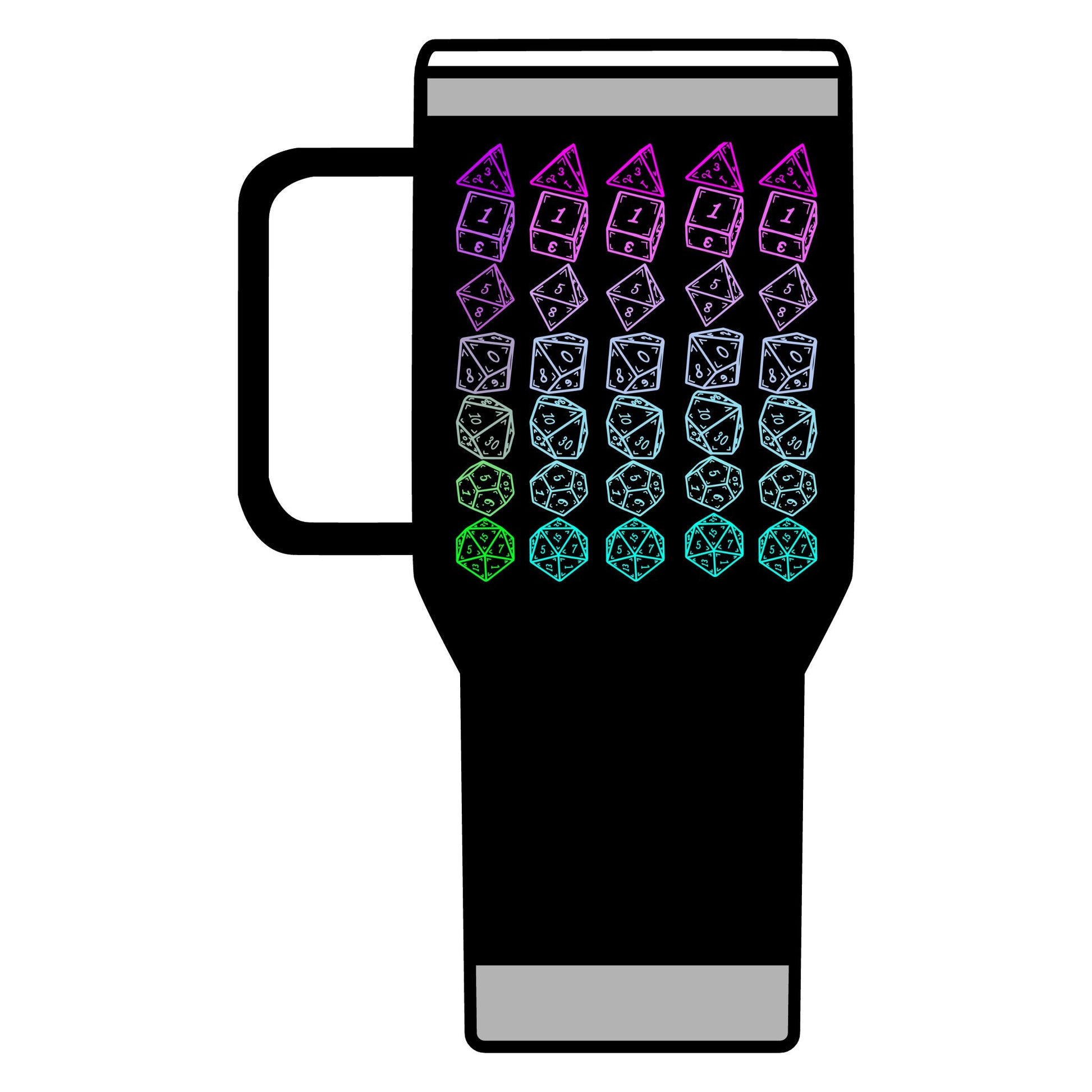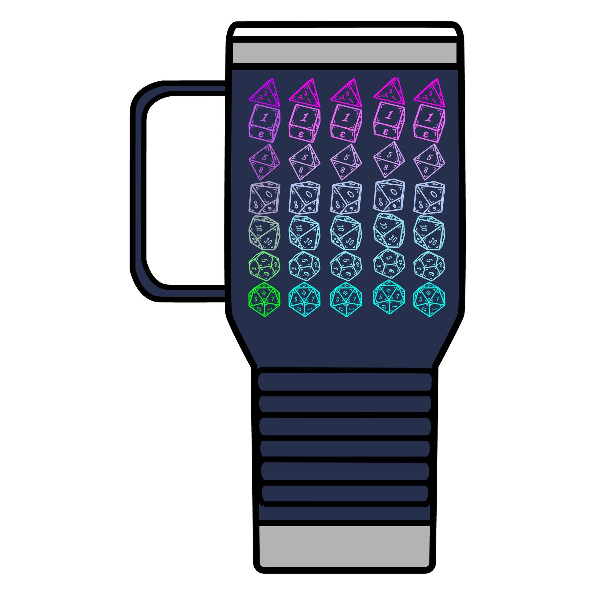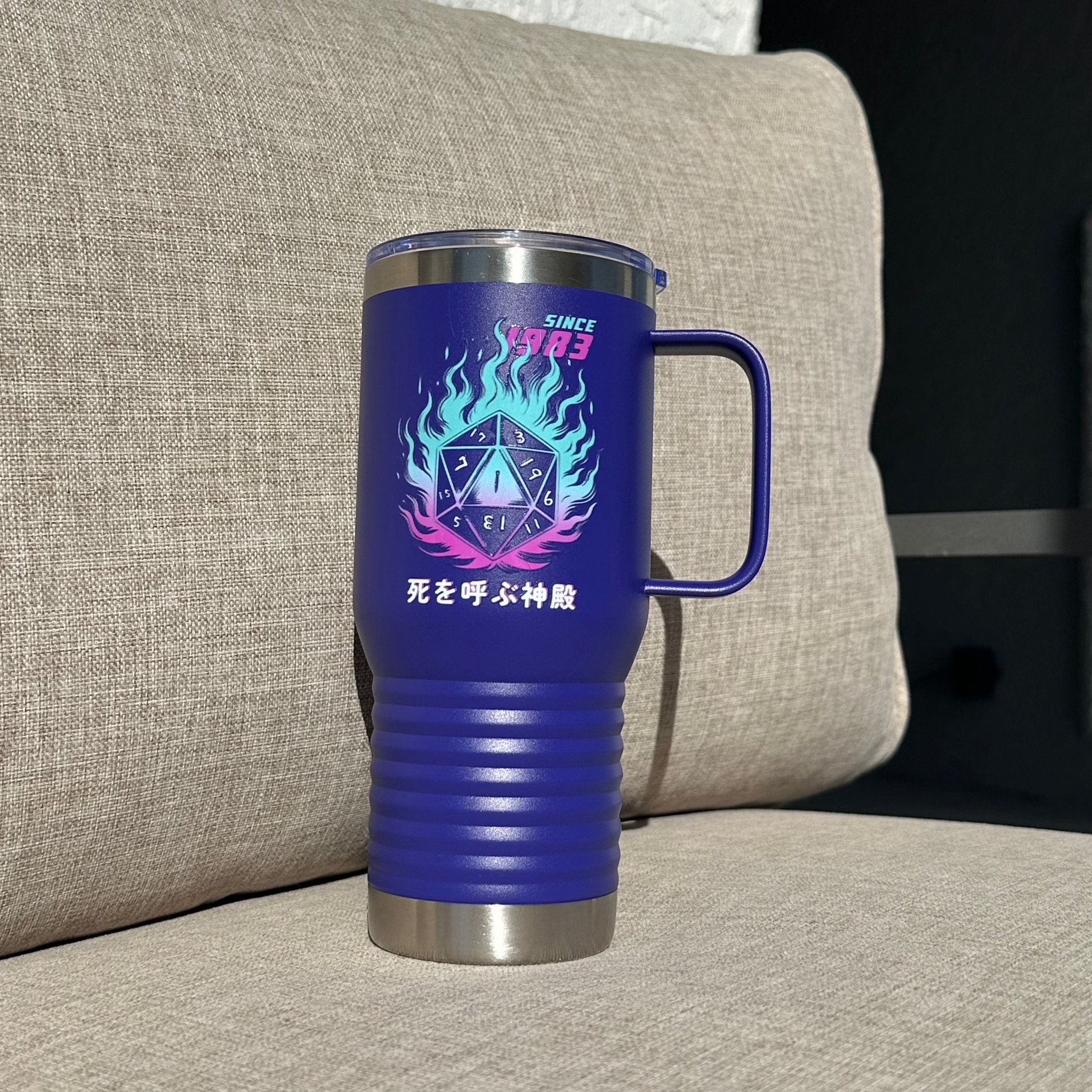 This Japanese-themed Tumbler features a double-walled vacuum insulation with a clear lid. It features a narrower bottom to fit most standard cup holders. It has a vibrant design throwing back to the classic adventure, making it a must-have for any tabletop enthusiast.