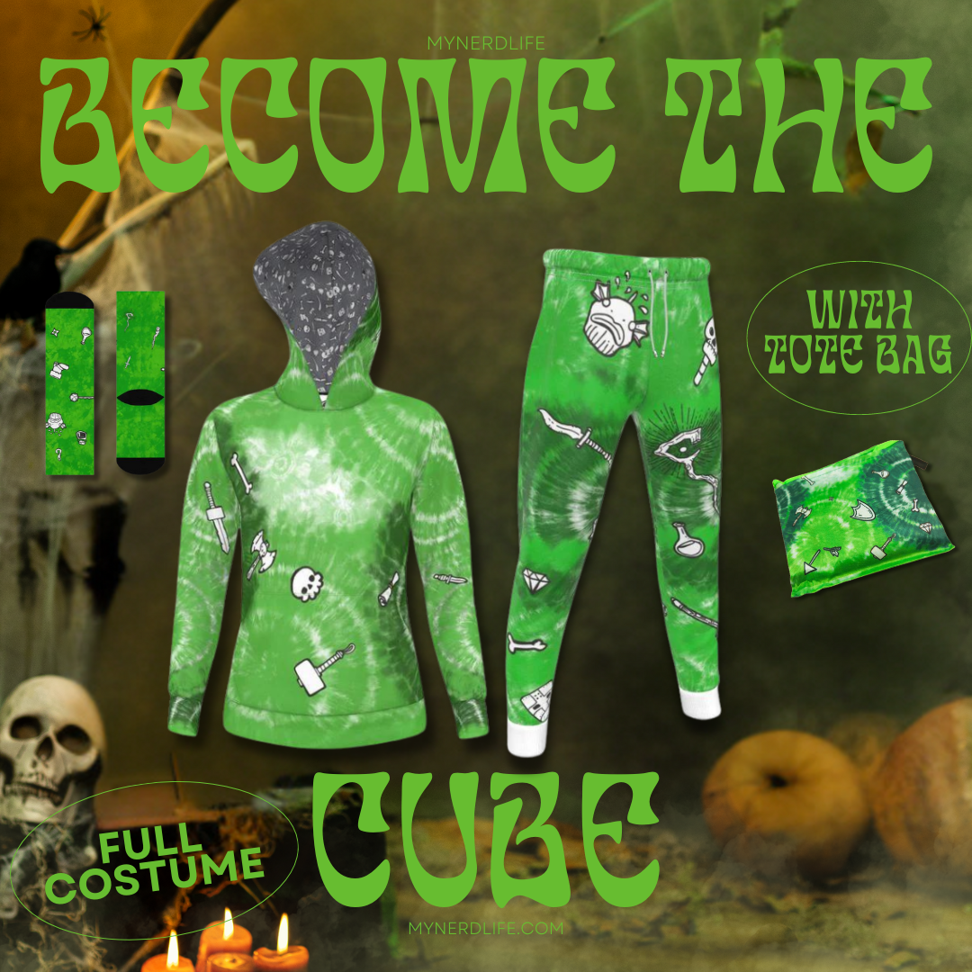 Don’t forget your matching tote bag, perfect for collecting all your ghoulish treats! Embrace the thrill of the night and let the adventure begin—this Halloween, you’ll be the spookiest cube in the realm!