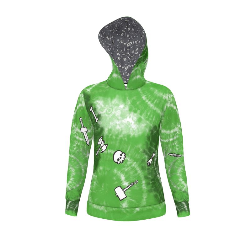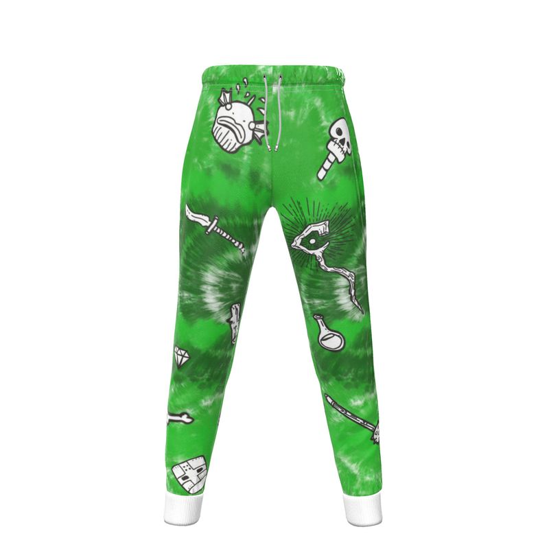 Unleash your inner gelatinous cube this Halloween with our eerie costume ensemble! Featuring a vibrant green tie-dye hoodie adorned with haunting graphics of swords, skulls, and hammers, this look perfectly captures the whimsical yet spooky essence of your favorite D&D creature. Paired with matching pants for a seamless, ghostly appearance, you’ll be ready to haunt the streets.