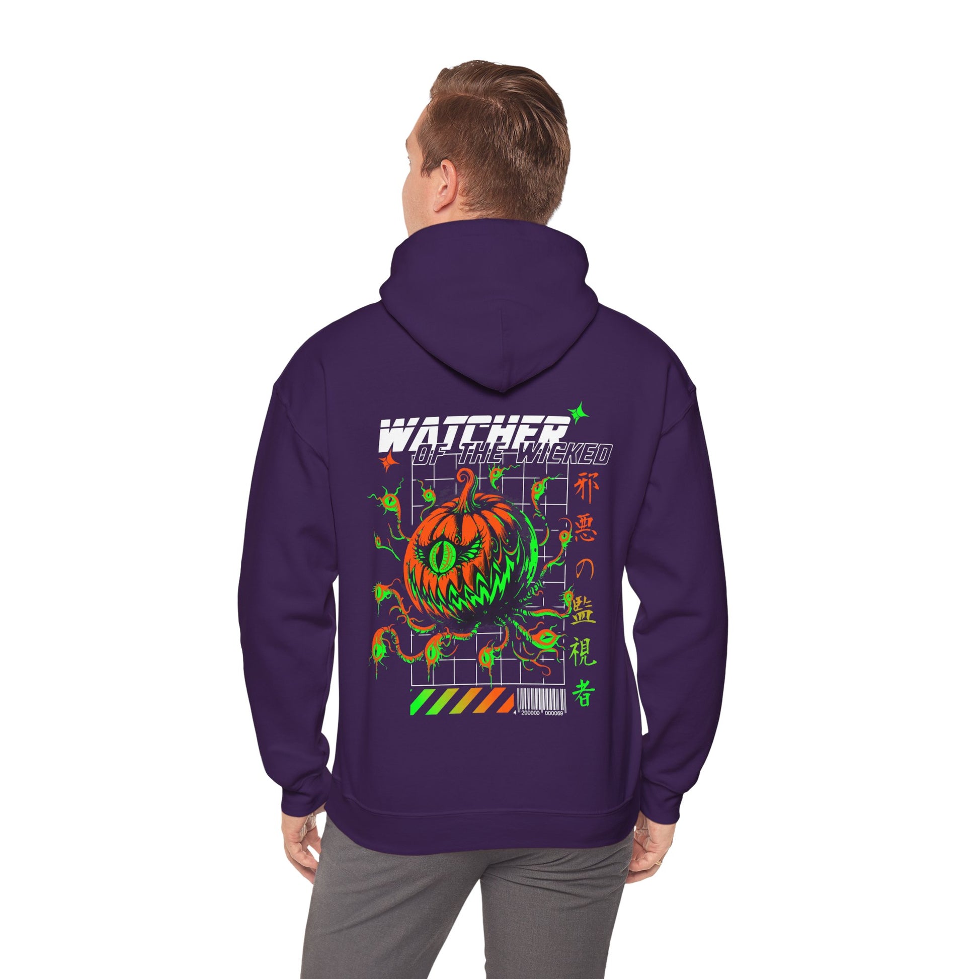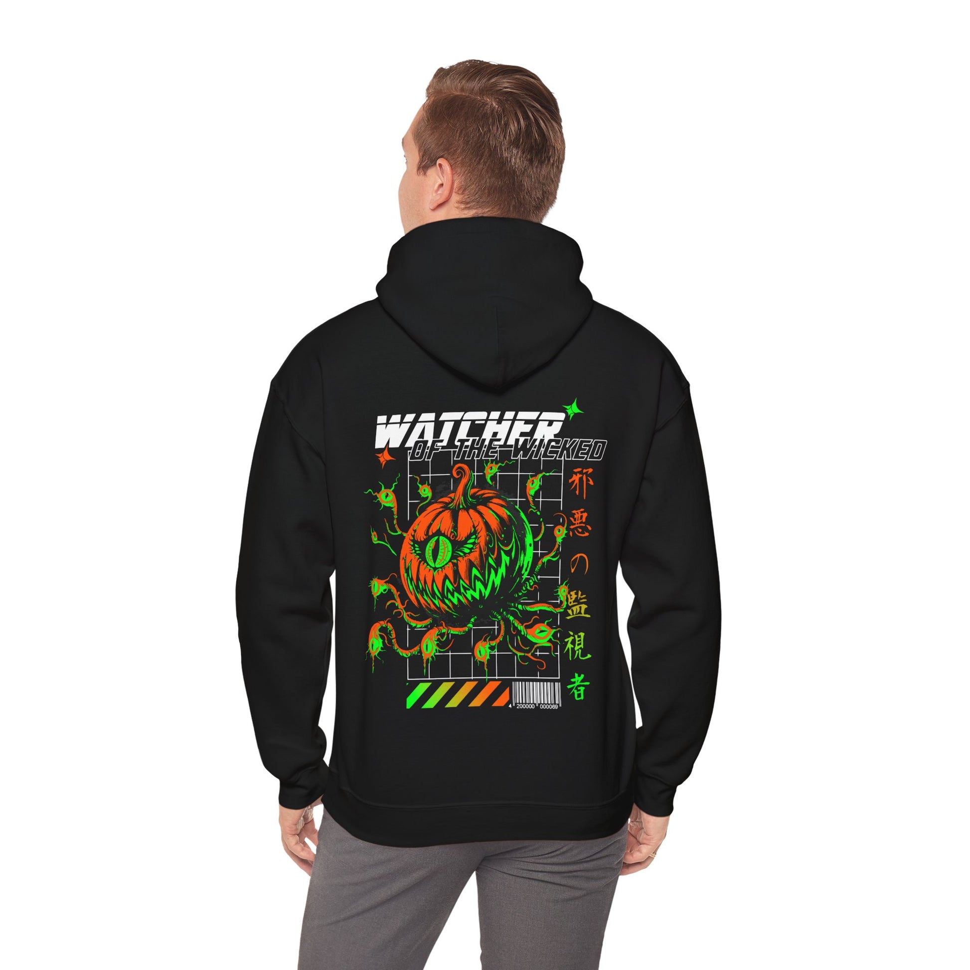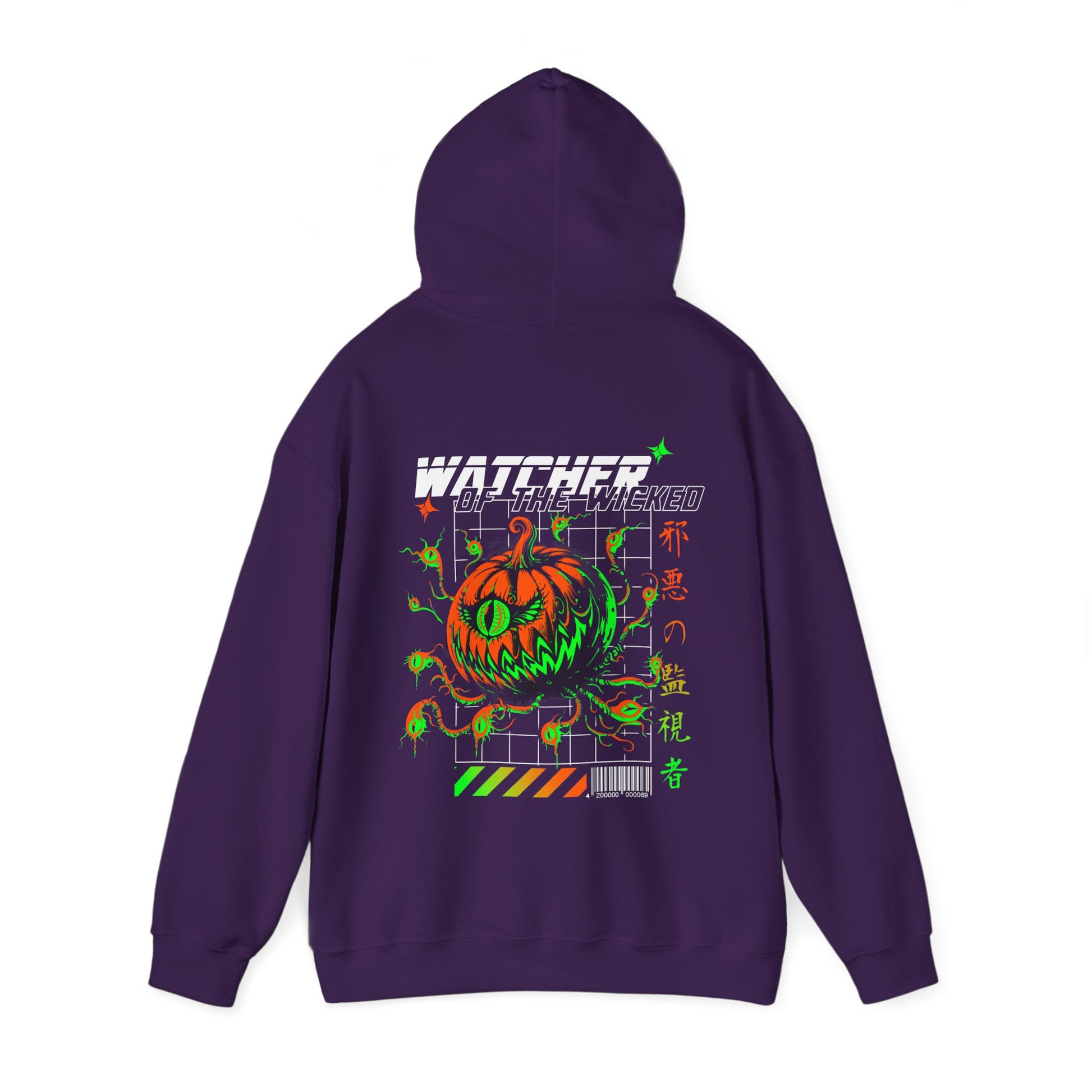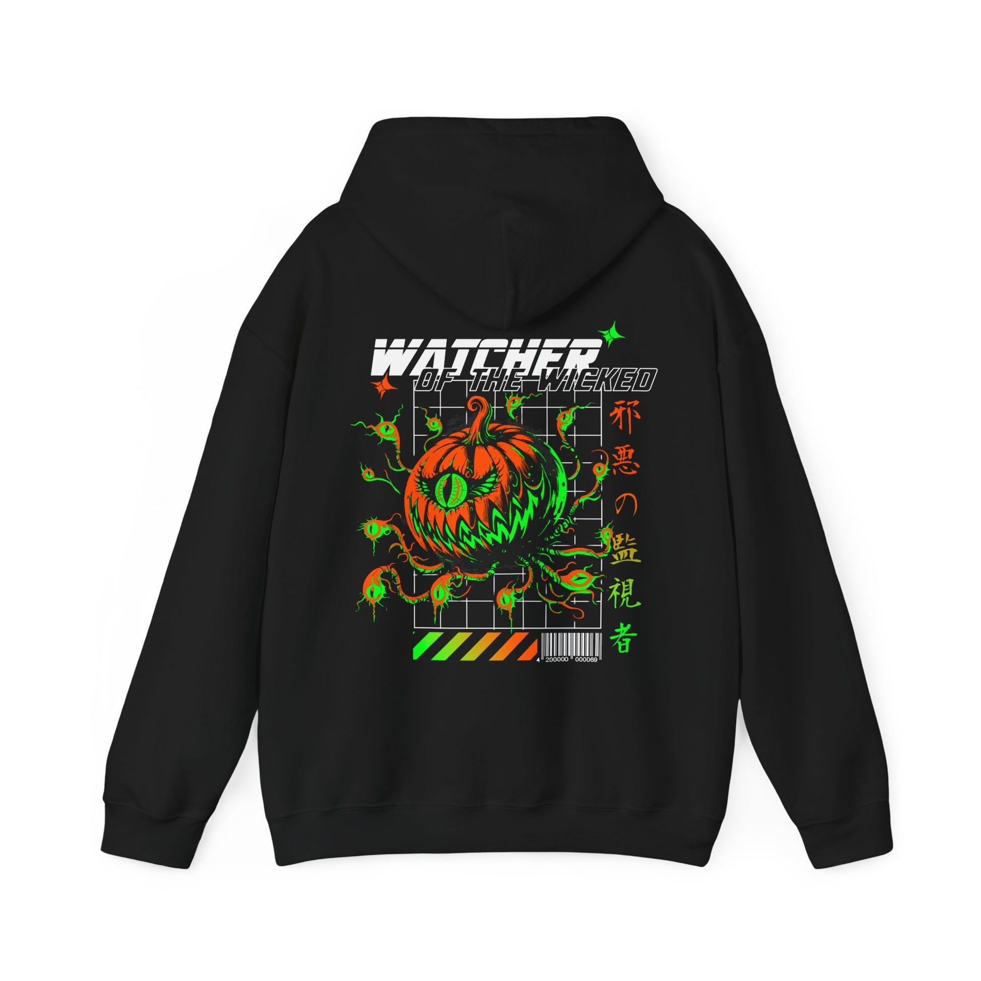 Stay warm & unleash the terror of the "Watcher of the Wicked" with this haunting design! Featuring a menacing pumpkin creature with glowing, monstrous eyes and neon tentacles, this tee merges Halloween horror with a futuristic, otherworldly vibe, perfect for anyone who embraces the eerie side of life.